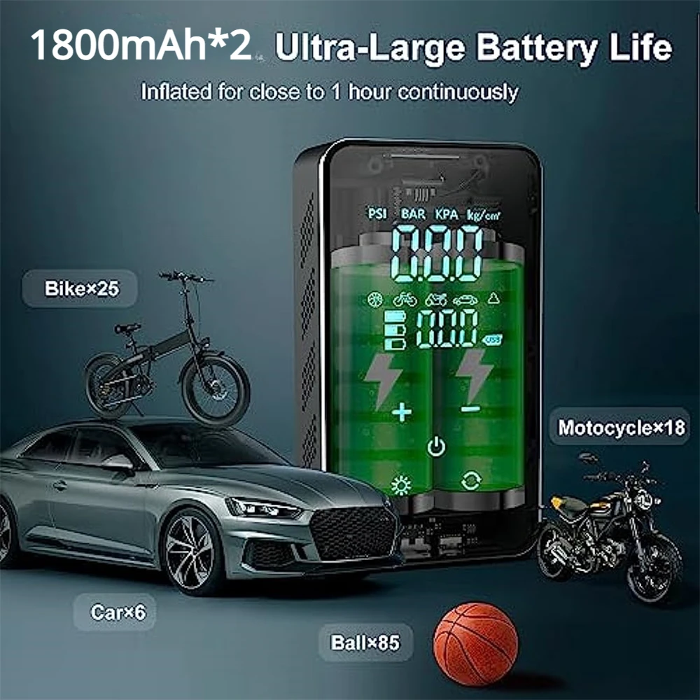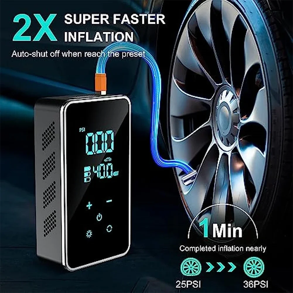 BUVAYE Mini Car Tire Inflator Pump Portable Electric Pump Multifunctional Automatic High-pressure Flushing Air Compressor