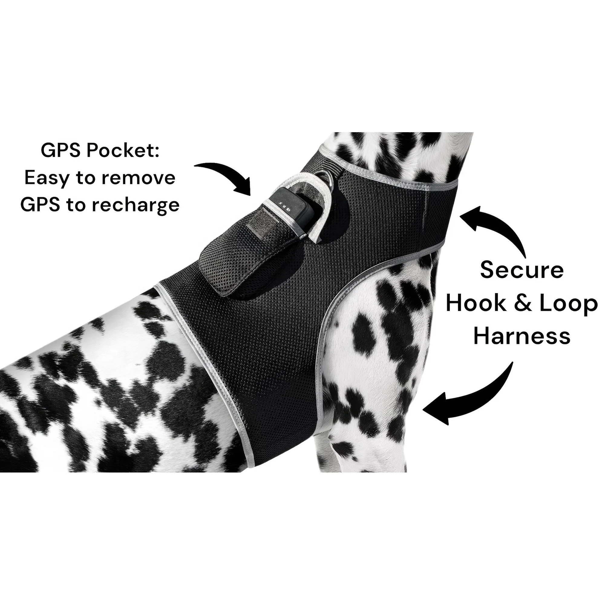 Premium mesh breathable body harness with pocket designed for your pets comfort first, and tracking second, comfortable for your pets with six sizes available and fully adjustable.